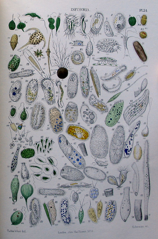 Plates 23 and 24. Infusoria, the colours here are a good facsimile of the originals.