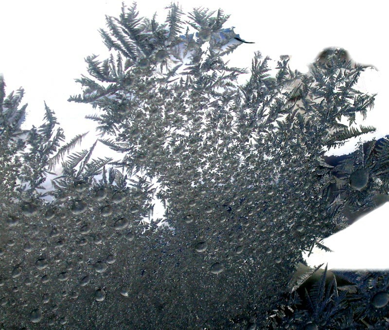 Dendritic forms are fairly common in nature and you can find an interesting discussion of such in D’Arcy Thompson’s classic work On Growth and Form. One morning last month, it was -24 F. when I got up and I noticed frost crystals on the bedroom window. Here are 2 examples of dendritic frost.