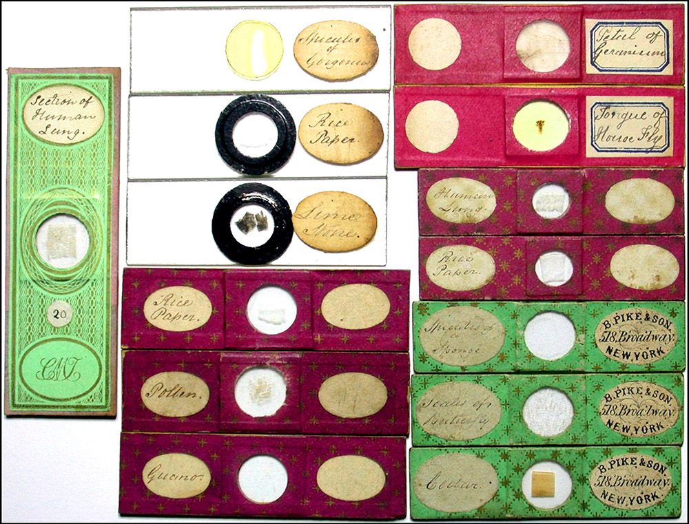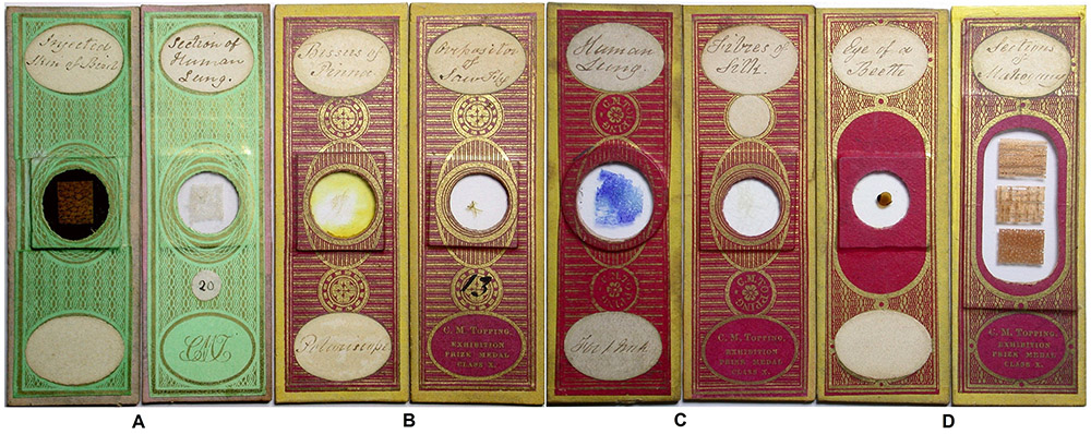 “Five cases of microscopic objects” were displayed by Topping at the 1855 Exposition Universelle in Paris.