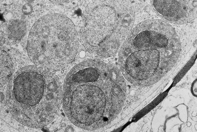 TEM of protist in the brain of a sick green and gold bell frog