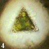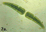 Fig. 5 A filamentous desmid: one cell has broken away & can be seen in end view. Note: desmids can be circular, elliptical, triangular or square in 'end' view.