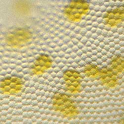 With high power objectives you can get a glimpse of the finer details of the cell wall. This picture, cropped from an image made with a 40X lens, shows that the cell structure is not a simple net but that there are two layers with different texture. The finest details of diatoms are on the edge of what is visible with the light microscope. Scanning electron microscopy is needed to see the actual structure.