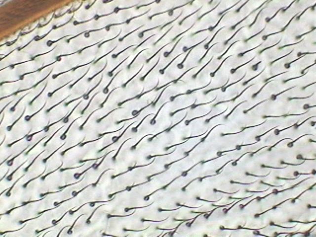 Thick objects.- Sometimes you will need to mount a thick object. Just start by including in the drop over the slide three or four supports of a height similar to the object height (hairs, paper, small pieces of broken coverslip and so on). Use Karo full strength or even a more concentrated solution obtained by evaporating the commercial one. Be generous with the quantity of mountant so there is a surplus surrounding the coverslip. It is best to leave the preparation to dry in the air. Be prepared for a very long process. As the solution dries, Karo retracts from the borders. If you need to, you must replenish the voids with concentrated solution. Use a very fine glass rod, or a needle, to supply the replenisher to the coverslip borders. When you see, after several weeks, only a little rate of retraction, and that the borders are only a little sticky, you must clean and seal the borders of the coverslip. Apply two layers of sealant. File horizontally and review every six months or more frequently until you are convinced that the preparation is set. Most of these preparations must be studied only with the low power objective, or under a stereo microscope (e.g. mosquito larva).