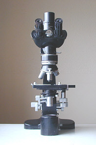 Mention "Dialux" to microscopists and in all probability they would envisage one of the relatively recent versions of Leitz Wetzlar's stands. This isn't altogether surprising as the original Dialux was quite different to the modern trend of angular stands that Leitz came to design in later models. The original Dialux 1, the subject of this appraisal, has design roots akin to the Ortholux 1 which it resembles in many ways though it is somewhat smaller. The Dialux 1 has often been incorrectly identified as the Ortholux 1, the latter originating from 1936.... if I remember correctly. This particular example of the Dialux 1 was issued circa 1958.