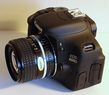 Right: A Nikkor lens on a Canon 600D body, my replacement DSLR body for the Nikon D5100. The slim adaptor is barely seen.