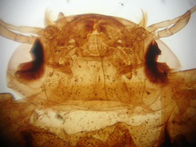 Lens 1: Slight optical zoom to fill field. Victorian water beetle slide Laccophilus minutus. Very competent aberration free images are provided to the eye and camera. |