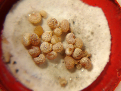 'Poppy Seeds'. Lens 3. A classic subject for the microscope described and illustrated as 'corn poppy seeds' by Dr. Henry Power in his book of 1663/4 Experimental Philosophy in Three Books which just predates Hooke's Micrographia (September 1665) as the first English book devoted to microscopy. Power's book had very limited basic illustrations and simple commentaries compared with those of Hooke. (Power lived at Elland, near Halifax. The house, now 'New Hall Farm', still stands and is a couple of miles from my house.) |