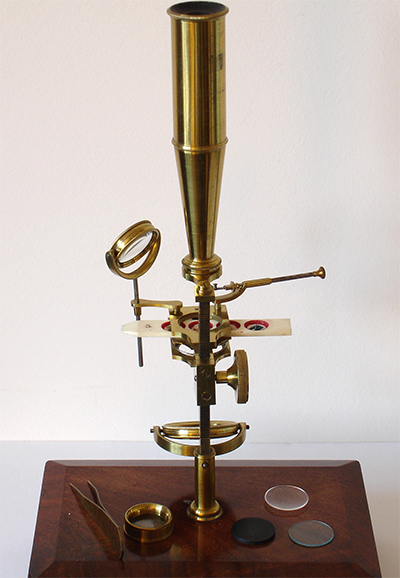 Antique microscopes can have an appeal on a number of levels—they are attractive for display and can prompt research into the model design and/or maker's history. To the amateur microscopist, one of their greatest appeals is that they are tools that can still be used. It's fascinating to explore their use and capabilities and to assess their pros and cons in a modern context by comparing with instruments of today.