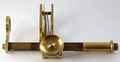 Right. The pillar has the typical straight cut rack of the period. The lenses screw into the fixed support left and the typical sliders of the time sat in the sprung loaded stage. The microscope has a well engineered feel but the focus is rather coarse for the high power button lens. At higher powers this example also has a slight lateral movement when focussing. The bright brasswork to the left side of the rack suggests that it has spent much of its life stored in the box rather than assembled, either for display and/or use. This observation was supported with the solid block of dirt in the pillar recess on top of the box and the extremely dirty lenses on receipt. Antique microscopes being rarely used seems all too common from my brother's and my joint buying experiences over some years. In this case a pity, as it is a design that is very easy to service and clean without special skills and the owner misses out on rediscovering the experiences of the early 19th century microscopist. |