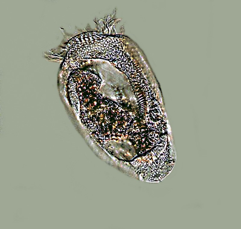 In this next image, you can clearly see the how the cilia are fused around the anterior end so that they look rather like feather tentacles.