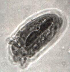 A second rather complex histochemical technique is the Feulgen reaction using Schiff's reagent. This method will demonstrate DNA in the chromosomes and chromatin in the nuclei. [See Figure 3, a ciliate from the rumen of an ox. The image clearly shows the long macronucleus and a distinct micronucleus.] This is an especially interesting technique for protozoa which are either dividing or conjugating.