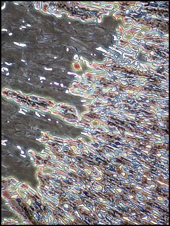 In some locations away from the coverglass edge, the smooth gray-brown