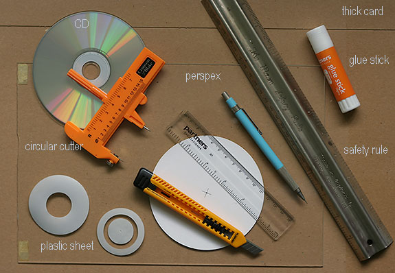 5. To use a CD as the rotating stage, they are available free on the front of magazines or in newspapers and machined to good tolerances plus they are the right size for this project.