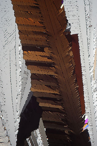 Here are two images of resorcinol prepared by the late Eric Marson, N.B.S. ref 115 to show the difference about 30 degrees can make when rotating a crystal slide - surely a good reason to have a rotating stage!
