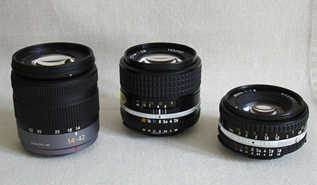 series 100mm f2.8, Nikon E series 50mm f1.8, notice the Nikons' wider