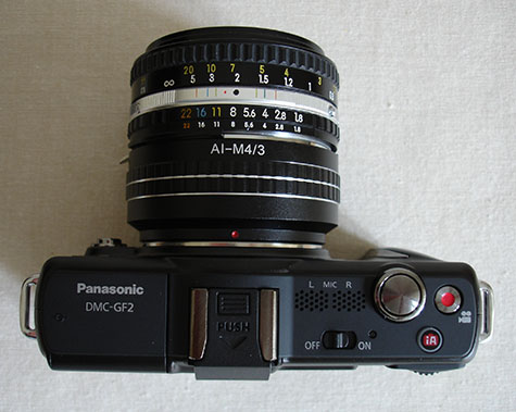 Panasonic GF2 fitted with Nikon AI to micro 4/3 adapter with Nikon E