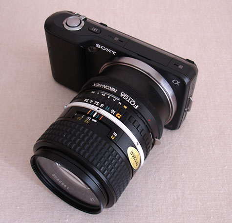 Sony NEX-3 fitted with Nikon adapter [not shown previously] and 100mm