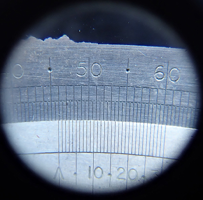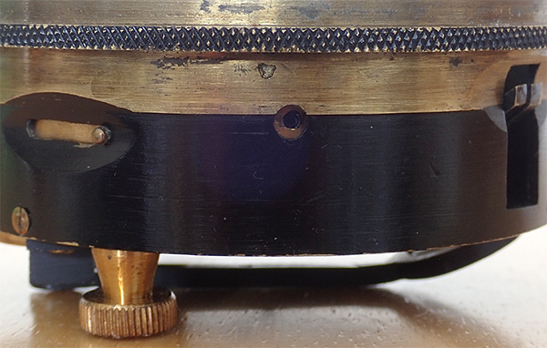 The case is in excellent condition and still supple for its age. At first, thought D. Mason & Sons Ltd. may have been the dealer who sold the sextant but a Google search reveals they were makers of leather goods. Full sized sextants often had an option for a large telescope to be fitted with exit pupils (objective diameter / eyepiece mag) of five or more—a value that birdwatchers / astronomers would be impressed with for their light gathering capability. On this box sextant the viewing aperture with lens is tiny but surprising how bright it is, even indoors. Some box sextants came supplied with an external telescope that attached on to the unit. There are recessed filters both for the index mirror which reflects the celestial object and for the horizon mirror. These filters are activated by recessed controls as shown below.