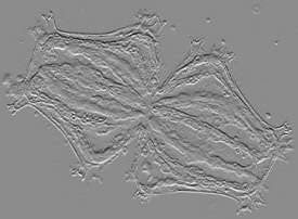 The text led me on the correct path telling me that it was computer-generated using graphics software. I quickly found one of my images and opened Photostyler (although Photoshop or PaintShop Pro also work), looked for 'Effects' and clicked on 'Emboss' (in Photoshop it is called 'Bas Relief'). To my amazement (I'm easily amazed), my color image changed to black and white but it had also appeared with 'depth'. There is an option to alter the direction of the light and hence the shadow (which gives the appearance of depth) and so I played around until I got the best image. I was hooked and so tried this on several other images. The very next day I received an e-mail from my friend Yen Fook Chew who lives in New Zealand telling me that he had seen the original image in the magazine and ...... when had I purchased DIC for my microscope?