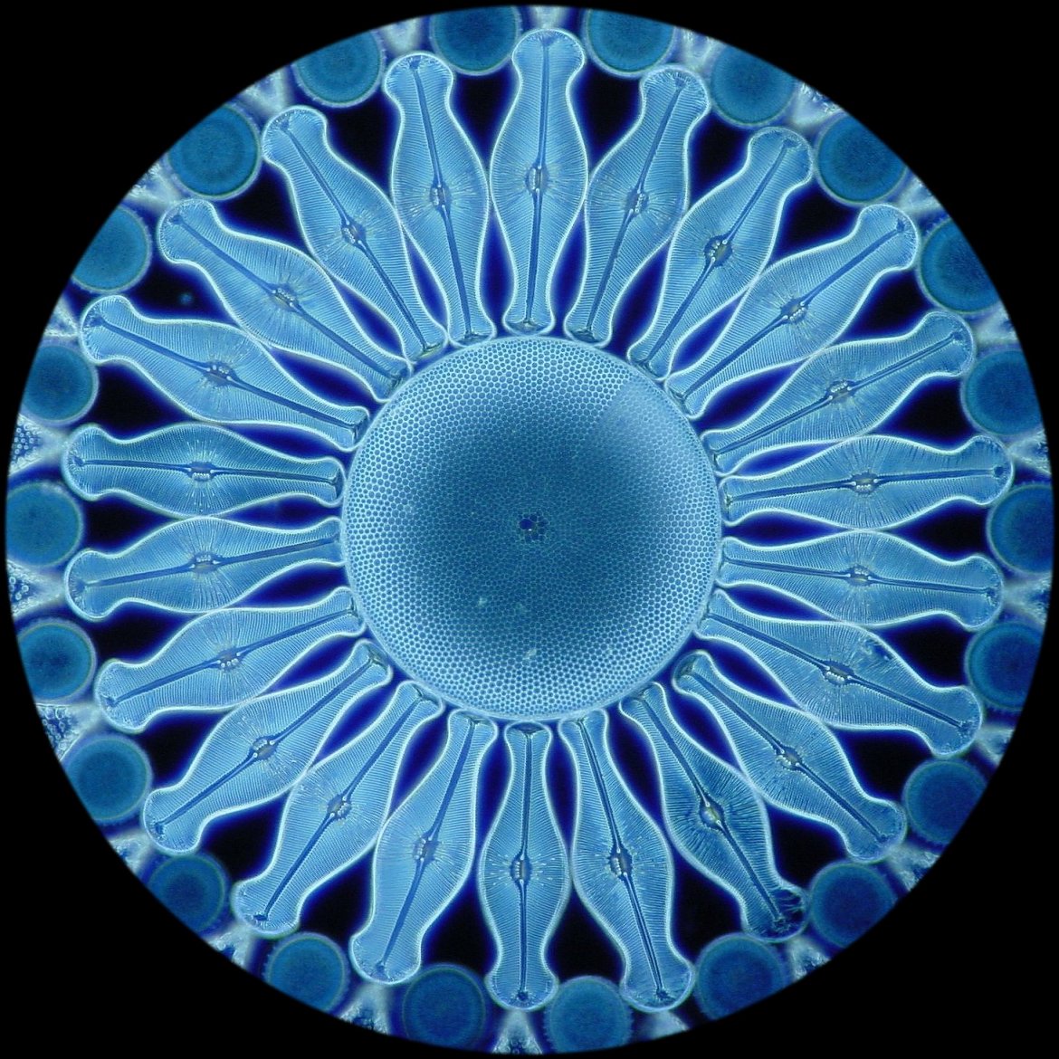 Discussions and resultsDigital photomicrography is rather involved. It requires reasonable equipment, lots of time and skills. If you just started with digital photomicrography and you are disappointed in the quality of your first images, do not feel frustrated. It's normal! Any type of photomicrography, digital or analog, requires a lot of practice to get it right. One of the most troubling steps to successful photomicrography is exact focusing. There are different ways to focus a digital camera. For instance, I am using a computer monitor and a remote cable (Nikon MC-EU1) to focus successfully with a Nikon Coolpix camera.At this point, I want to mention a problem you might encounter when using a consumer grade digital camera. Due to the non-removable zoom lens of this type of camera, certain models exhibit artifacts that might be somewhat disturbing. I have found that these artifacts occur more likely when the image has a high contrast. An example of an image with a high contrast is a whole mount of stained bacteria in brightfield illumination. I have found similar small artifacts with Nikon and Sony cameras. Over the last couple of months, I have heard that some microscopists believe that the older Nikon Coolpix cameras (model 950 and 990) are less likely to show artifacts than the newer models (such as 995 and 4500). The image below shows such an artifact with a Coolpix 995 camera when the condenser's aperture diaphragm is closed too much.