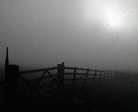 Fields in the fog.