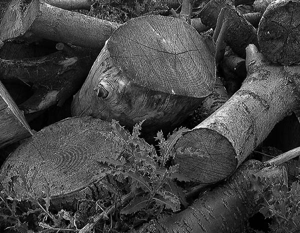 Logs, Nikon with circular polarizer and red filter which greatly increases contrast.