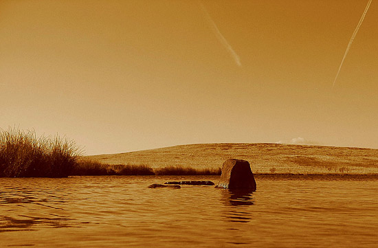 Local reservoir, Nikon with circular polarizer and red filter - a strange optical effect here of a 'sloping' reservoir is created