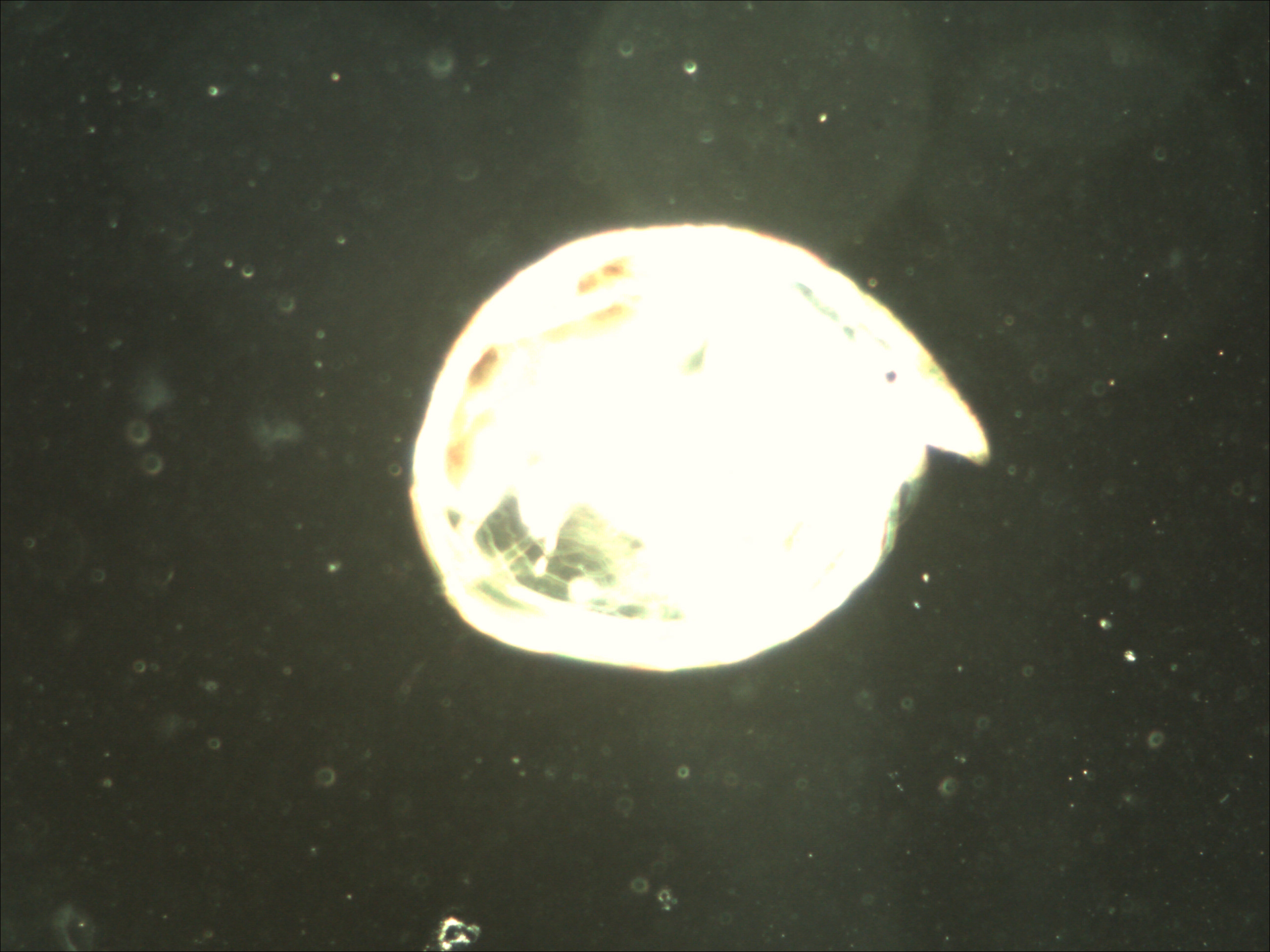 Some small adjustments made in exposure settings on camera. I've also tweaked a version in Photoshop - helping enhance details. VideosBoth videos (mpeg format) are quite large and in original size and compression. Right clicking and choosing save works best as at least you get a download progress indicator! Brachionus_Calyciflorus 400x - 9mb (Editor's note: the videos are excellent and well worth the download time.) The 5 megapixel DCM500InstallationInstallation went much more smoothly. This time I got the software designed for the actual microscope camera. A good start and within minutes I was ready to go! In UseThere were 3 main issues with the actual camera: 1) Very significant and for me unacceptable levels of vignetting. 2) The camera's driver software appeared to make it virtually impossible to get a decent image. Attempts to change exposure and white balance settings were futile. 3) Live image update was slow - very, very slow. Any changes to the image or settings took half a second to reflect in the image. This may not sound long but made focusing, white balance and exposure setting very tricky. Having set up the microscope and installed the digital eyepiece I launched the software and used the default image settings ( exposure and white balance being the most vital ). On default settings the images looked awful! Exposure and white balance were all wrong ( see images ). So I turned to the camera's settings menu and proceeded to play with the exposure and white balance settings. There's a choice of auto settings where you specify a preference ( darker, lighter etc ) and the software tried to match that. I found the tools to be very much a blunt instrument - either too dark or too light but never just right. Also while I might get the exposure acceptable it'll cause the white balance to change. So I'd adjust the white balance to barely acceptable which caused the exposure to change - arrrrggghh! There are manual settings and these worked better though not 100%. Exposure was acceptable to use but manually adjusted white balance by moving 3 sliders ( red, green, blue ) was a massive challenge. I doggedly persisted and was determined to get a decent image. After a few very frustrating hours I gave up. The images you see in the next section are the best I could manage after a LOT of fiddling with both microscope and camera settings. Sample images