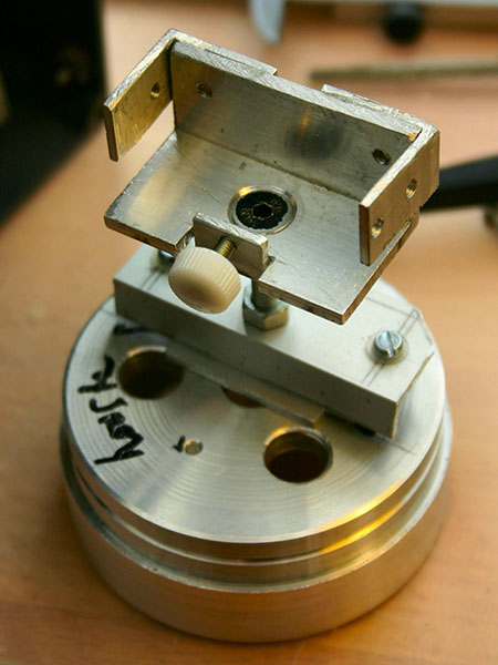 In 2005 I saw white super leds for the first time and immediately I realized the potential they have for microscope illumination. In the course of 2006 some attempts in that direction were made, that resulted in a fully functional white led illumination for my Leitz Orthoplan. Later that year, a Leitz Diavert was obtained, with a defective lamp. With the fitting of this lamp, some epoxy resin, a coin and a white super led a new light source was sculpted, that is still in use today.
