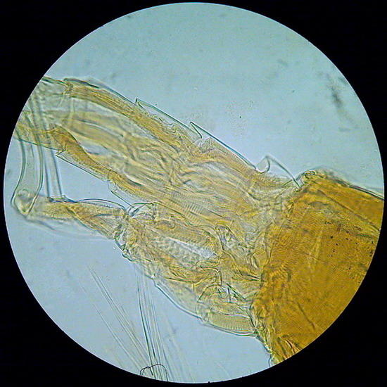 Fig.23 - von Apathy – the tail end of a copepod - x 40 - color corrected (AutoExposure - ACDSee) to remove the dark honey color of the mounting medium. Conclusion After ten years after preparation, ALL the media