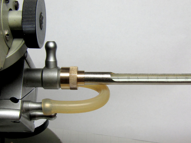| My junk box provided a nice protective brass sleeve with bright and shiny coating of both surfaces, with no tarnish whatsoever, the inner surface furnishing plenty of reflected light to increase contrast and allow easy readings. Brass sleeve was too long so I have shortened it by cutting off 25 mm of its length. The OD is 10.0 mm and wall thickness 0.55 mm, a bit larger than actually needed for the thermometer that I intend to use. As there is a problem finding a suitable thermometer, of the correct diameter, length, measuring range and of required resolution, one has to make a number of compromises in order to get job done however all characteristics must remain within the limits dictated by the refractometer specs. |