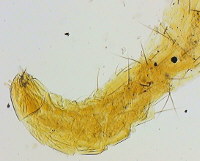 | Hedgehog flea head. The sucking mouthparts are barbed making fleas difficult to remove. |