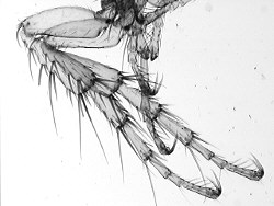 Hedgehog flea legs. Notice the claws which enable them to grip the host |