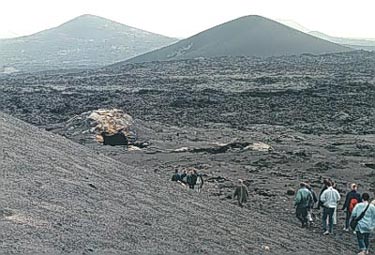 The diameter of this cave is about 4 metres. This is the result of a large air bubble entrapped during the streaming of the molten lava. Now, a part has probably collapsed and we have a small cave here. Please note that large surfaces are yellow.
