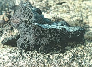 A piece of lava stone (about 30 cm in size) containing numerous small cavities on the surface.