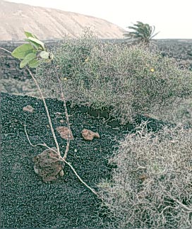 Or this plant with large, oval leaves just emerging from the black lava soil?