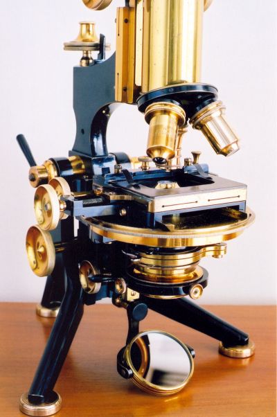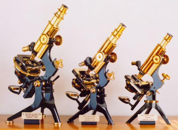 Many years ago, I was given several microscopy books written at the beginning of the last century and published in Great Britain. The authors compared 'home-grown' microscopes, notably Watson stands, with the new 'Continental' types of Leitz and Zeiss. Not surprisingly, they considered the stability and range of controls of the British stands to be superior. From the photographs, the characteristic tripod profile of a Watson 'Edinburgh' stand seemed to me to be the perfect mix of form and function.