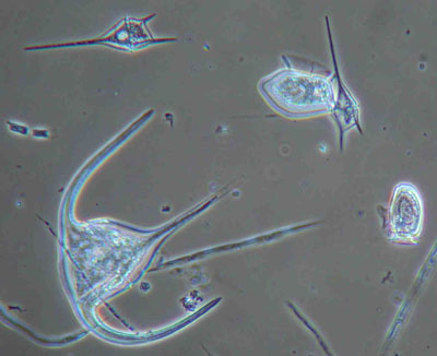 Figure 4: Marine phytoplankton (dinoflagellates) from the Irish SW coast. Mounted in glycerol-jelly. Similar illumination as in Figure 3.