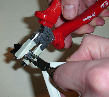 We don't want to damage the nice anodised aluminium finish on the oblique control so if using pliers wrap some protective tape around the jaws to prevent damaging the finish as shown in Fig 7. The pliers I use also have a gentle curve cut out of the centre of the jaws rather than a completely flat jaw this makes the grip much easier, you can just about see this impression through the tape above.