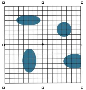 The grid used in this example is our favorite. It is a copy of the Amsler grid (also called Amsler chart). This is a most useful device for persons to test the condition of the maculae in their own eyes. Complimentary copies of it can be obtained at ophthalmologists or optometrists offices, or downloaded from the web. Including the intersections, the sites where the lines touch the borders, and the corners, the Amsler grid offers 289 test points. Obviously, the image of the grid may be reduced or enlarged to suit the sample to be tested.