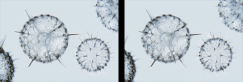Stereoscopic imaging with a normal compound microscope Cross eyed images by Wim van Egmond, the Netherlands |