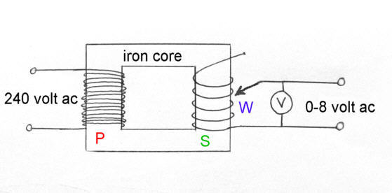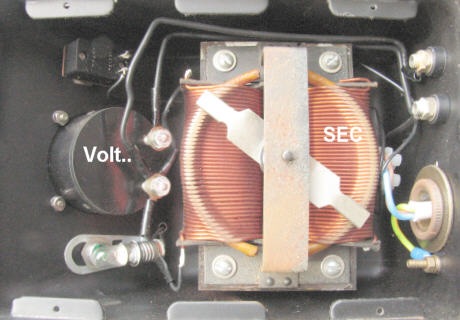The Wiper picks up the low voltage output from the secondary coil at a point determined by the user, so varying its output voltage to the bulb's filament.
