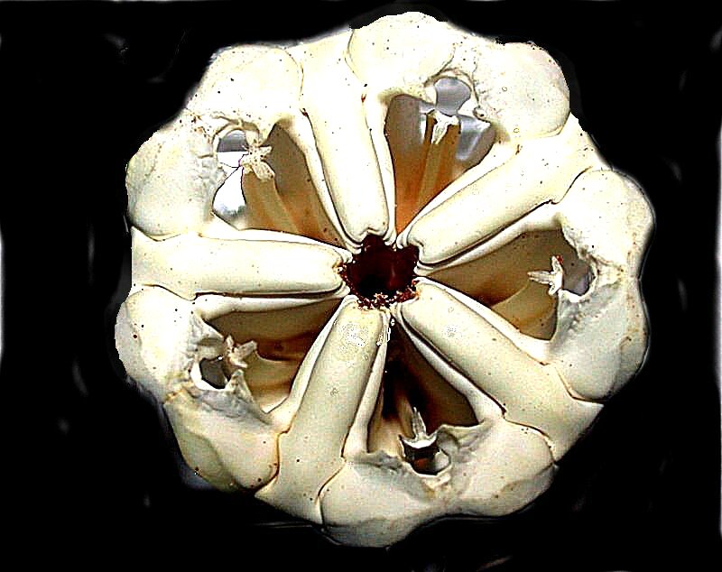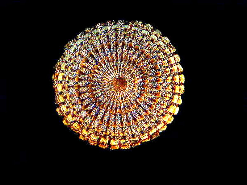 Sea urchins, the “pin cushions of the sea”, possess an incredible structure, called “Aristotle’s Lantern”. This is the “mouth” and usually consists of about 40 “plates” The image is a glimpse inside a lantern, which though relatively small, is the largest I have ever encountered. This is a view from the side.