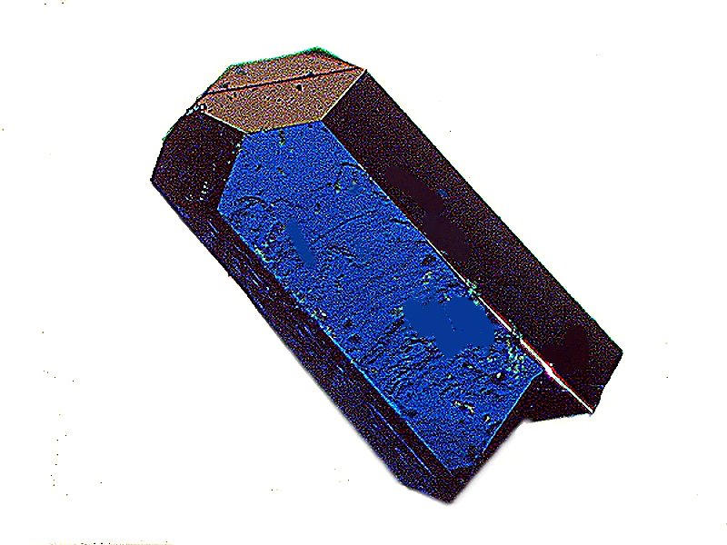 The final example is a chemical crystal which formed on a slide and which I isolated both because of its form and its beautiful rich color. It is from a solution of Copper acetate.