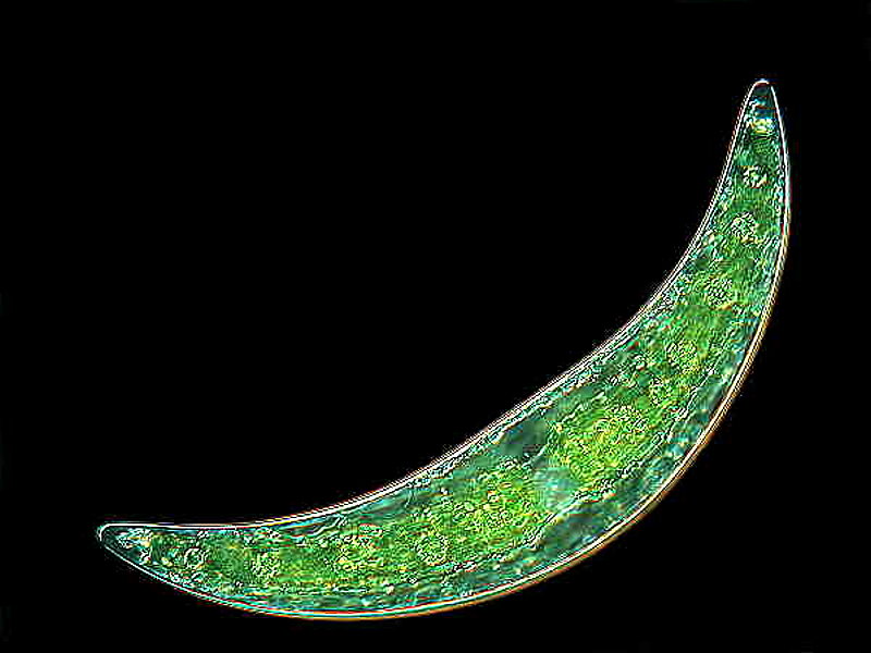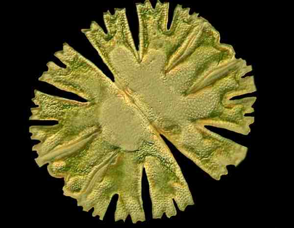 We’ll return to the echinoderms a bit later, but now I would like to turn to some truly microscopic organisms. For starters, two of my favorite desmids. These minute protists display remarkable diversity. I’ll show you Closterium which is crescent-shaped and Micrasterias which displays bilateral symmetry.