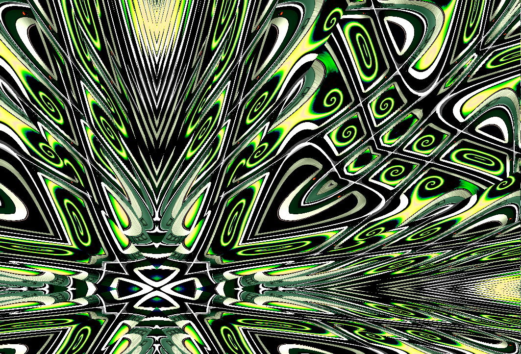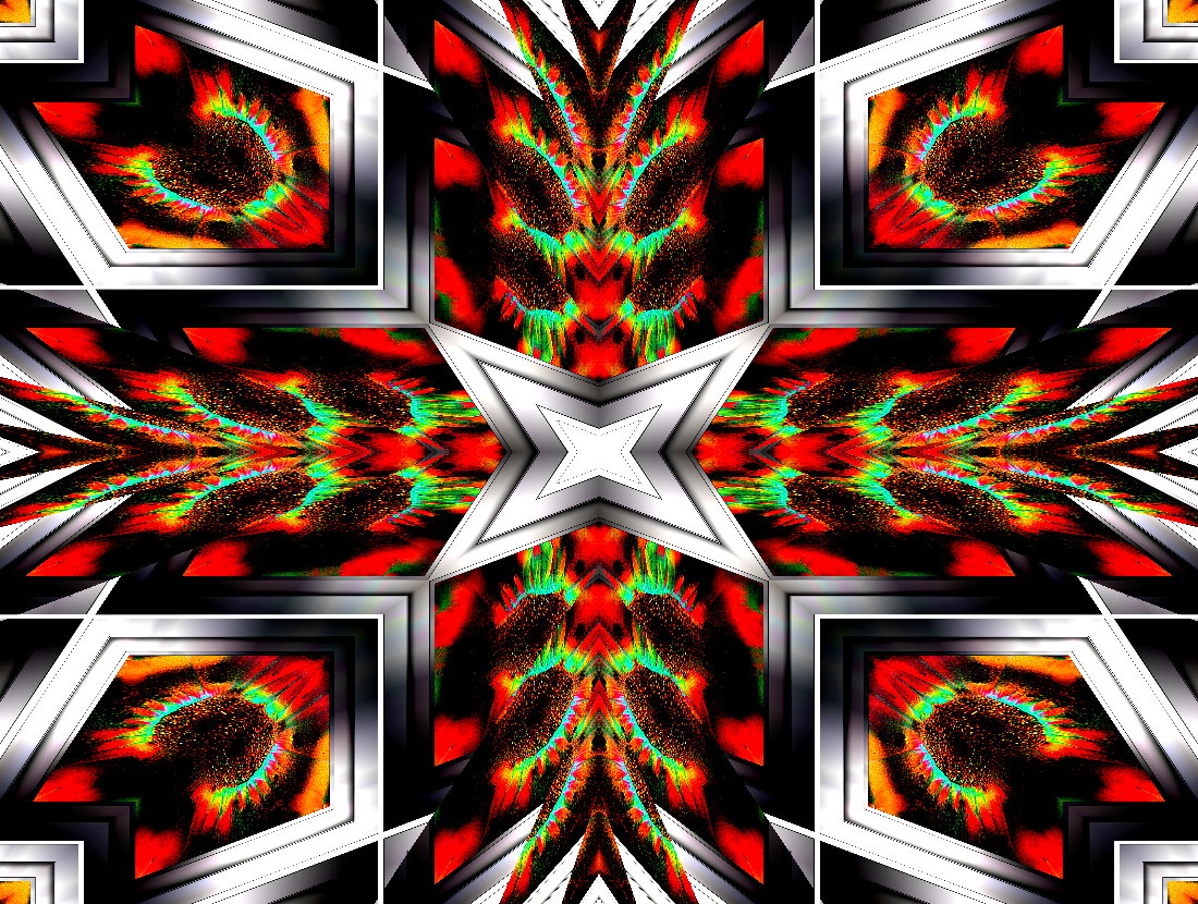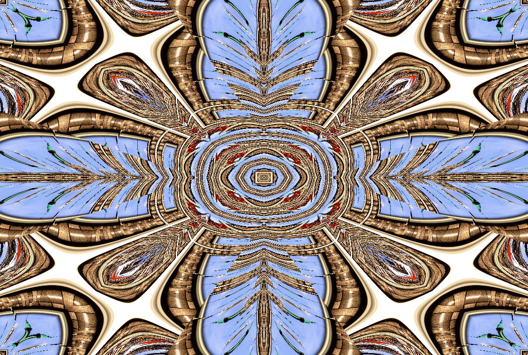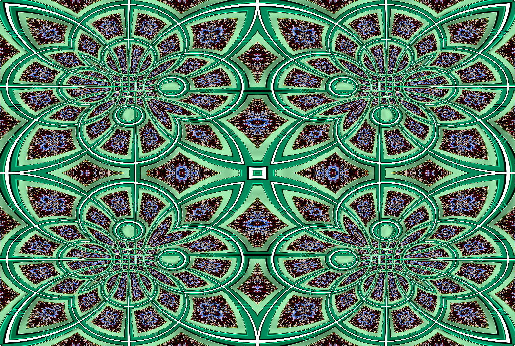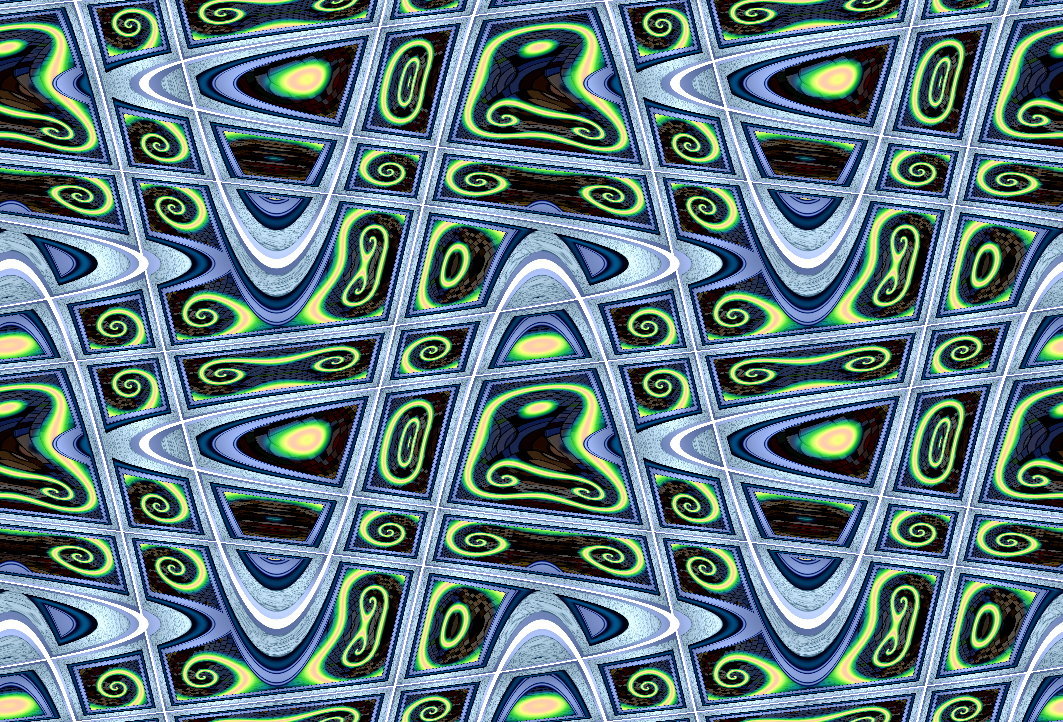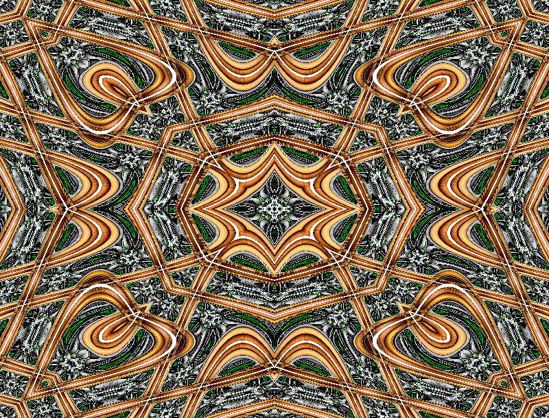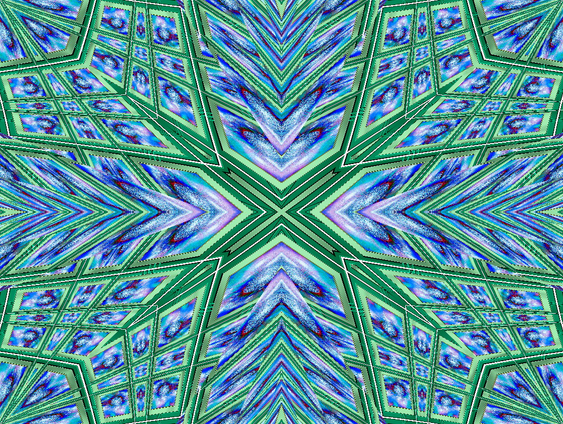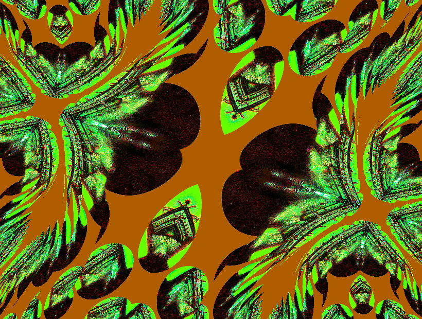 There is some disagreement as to whether or not it is the galleries which are warped or whether it is me. Undaunted, however, I shall proceed. A close friend of me and my wife used to use some of the crystal images which I sent out to transform into striking embroideries. However, because of some health problems, she is no longer able to do this. The saving grace is that she can still do beaded designs and so she asked if she could use some of my images for that purpose. I was flattered and suggested that it might be interesting to take some images and subject them to various sorts of computer graphic operations and that she could then select any she like and used them as models for creating patterns that she would like to turn into beadwork.