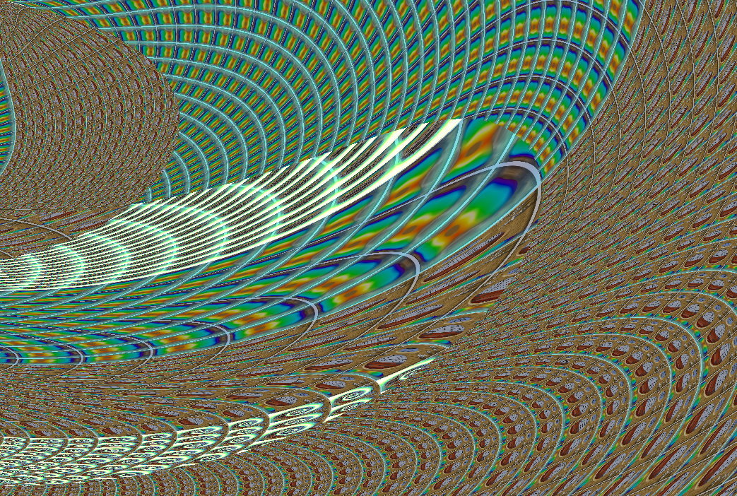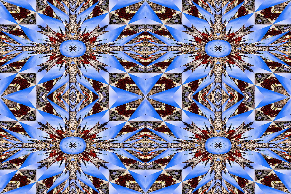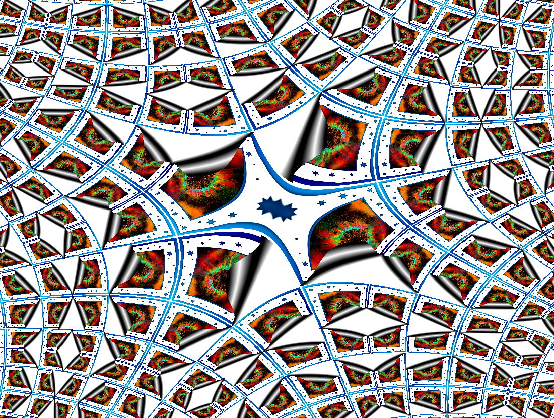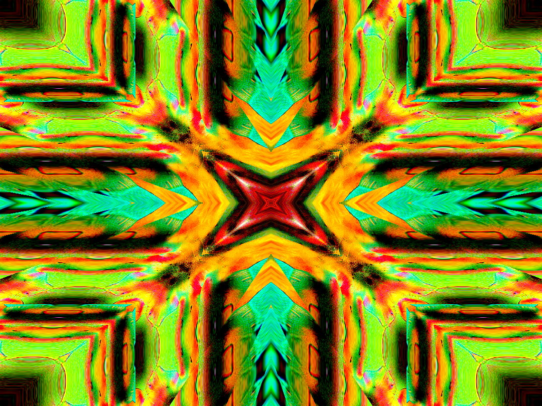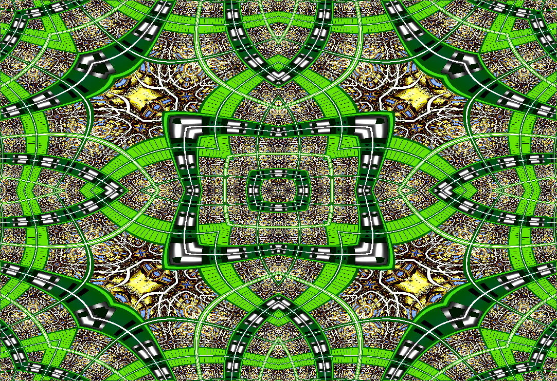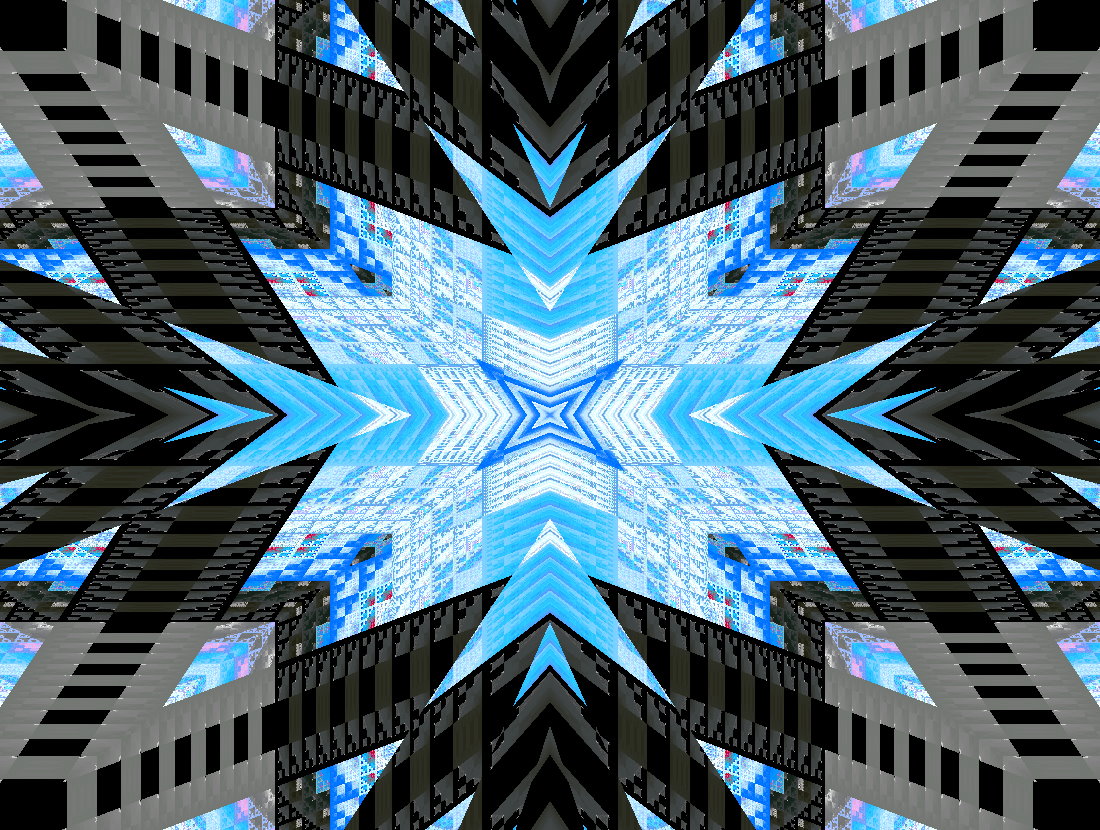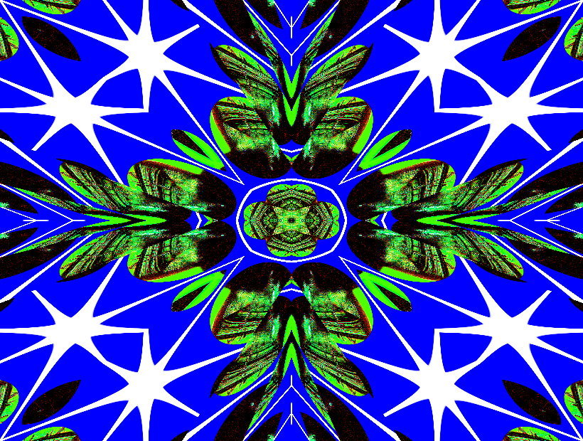 There is some disagreement as to whether or not it is the galleries which are warped or whether it is me. Undaunted, however, I shall proceed. A close friend of me and my wife used to use some of the crystal images which I sent out to transform into striking embroideries. However, because of some health problems, she is no longer able to do this. The saving grace is that she can still do beaded designs and so she asked if she could use some of my images for that purpose. I was flattered and suggested that it might be interesting to take some images and subject them to various sorts of computer graphic operations and that she could then select any she like and used them as models for creating patterns that she would like to turn into beadwork.