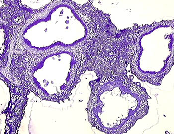 Technical Notes: These microscopic images are obtained from tissue samples which were embedded in a plastic matrix and cut by a glass knife to 2 micrometre thick. Sections were stained with aqueous crystal violet (0.5%).