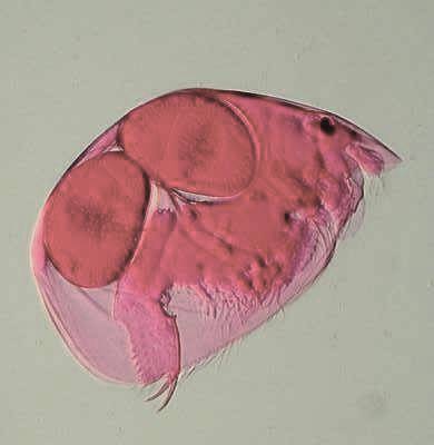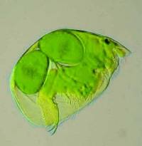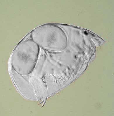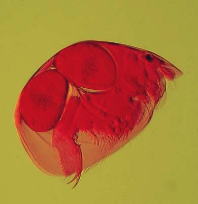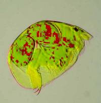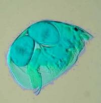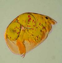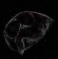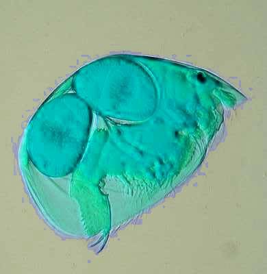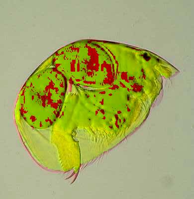 2) Conversion of a multi-color image to a 2 color image: These images are of a freshwater cladoceran which is common in this area. The eyespots show up clearly in both cases and both images give us detail in such a manner that there are features which one might notice more readily in one image rather than the other. This is one of the reasons that contrast and background color can play an important role in the presentation and interpretation of an image.