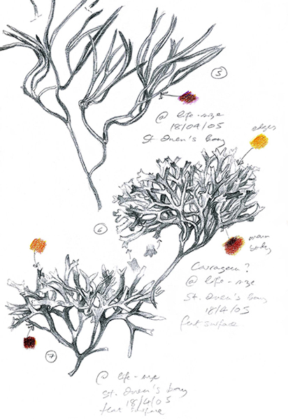 Similarly, the seaweeds were collected from intertidal debris, and picking of flowering plants was avoided by using a digital camera in close-up mode and making sketches.